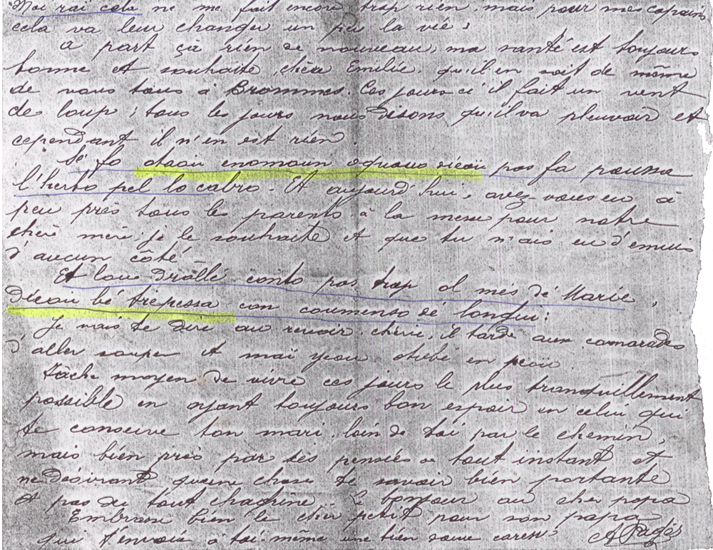 Instantanèu de l’estat d’esperit de la populacion pendent lo conflicte, la correspondéncia escambiada entre los soldats e l’arrièr, amb los quasernets de guèrra tenguts per d’unes soldats, son, sens contèsta, una de las sorgas dirèctas mai segura e abondosa per percèbre lo viscut de la guèrra.